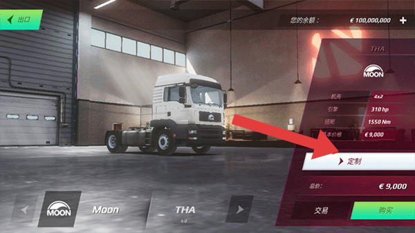 2、进入到了欧洲重卡车模拟卡车信息的界面,操控者可以选择定制的按钮,制定属于自己的卡车。