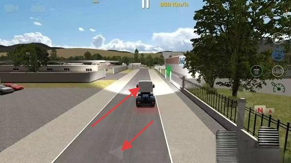 1、插入钥匙启动引擎,仪表盘灯光闪烁,挂入挡位松开手刹,驾驶红色牵引车从汉堡港口出发,开启横跨欧洲的首次货物运输。