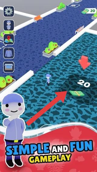 1、呈现了角色在场景中移动、收集物品的玩法,表明其简单有趣的理念,是侧重轻松探索、收集养成,用于展示基础玩法流程。