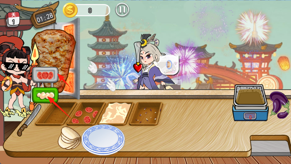 1、订单优先级管理:同时处理多份订单时,先制作「简单订单」(如蔬菜卷)避免超时,复杂订单(如牛排+牛油果+三种酱料)可延后但需留意顾客耐心条。