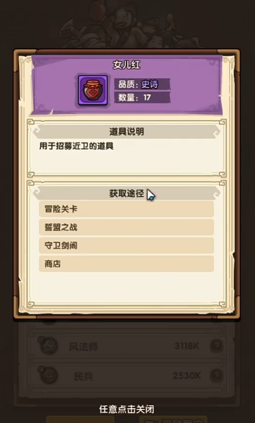 我是大主公里面的女儿红怎么使用,从游戏开始以后女儿红便悄然登场,伴随玩家度过前期艰难的发展阶段,它并非仅仅是一种普通的游戏道具,而是在武将招募体系中扮演着举足轻重的角色,下面是使用方法和一些介绍。