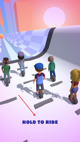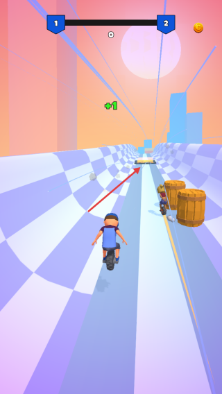 3、动态难度系统:根据玩家水平自动调整赛道障碍密度与对手AI强度,新手可从基础赛道熟悉平衡操作,高手则面临极限窄道与激进对手的双重挑战。