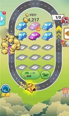 2、车辆行驶时,自动收集金币,用金币再点【提车】扩容。