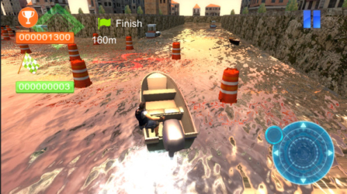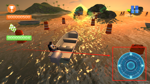3、通过虚拟摇杆精准操控快艇,在波涛中保持最佳行驶路线。
