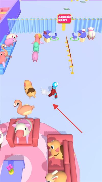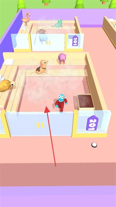 1、操控角色在酒店不同区域移动,按箭头指引,将动物引导至对应位置,完成接待流程。