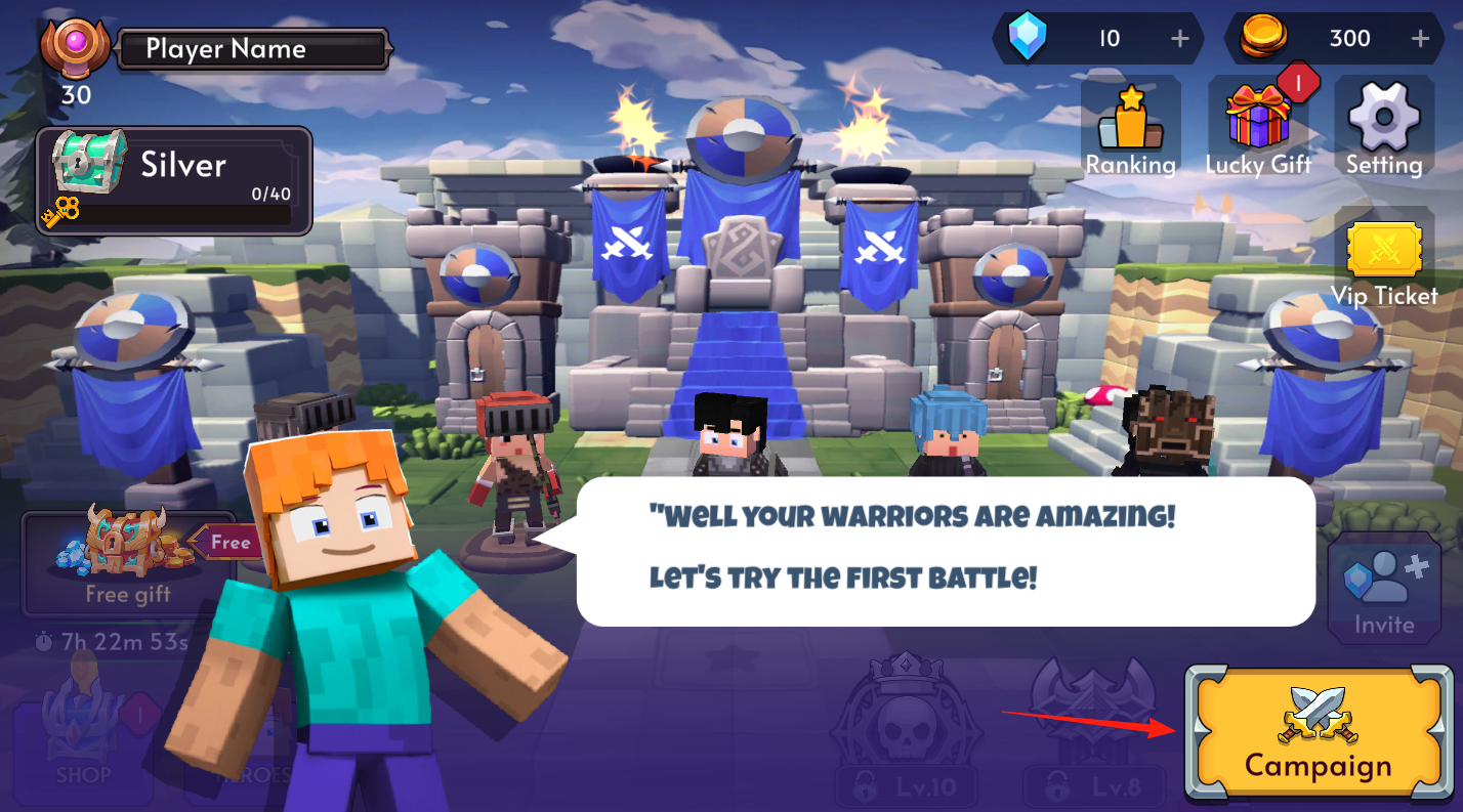 1、主城界面点击【Campaign】,开启第一场战斗,进入关卡挑战。