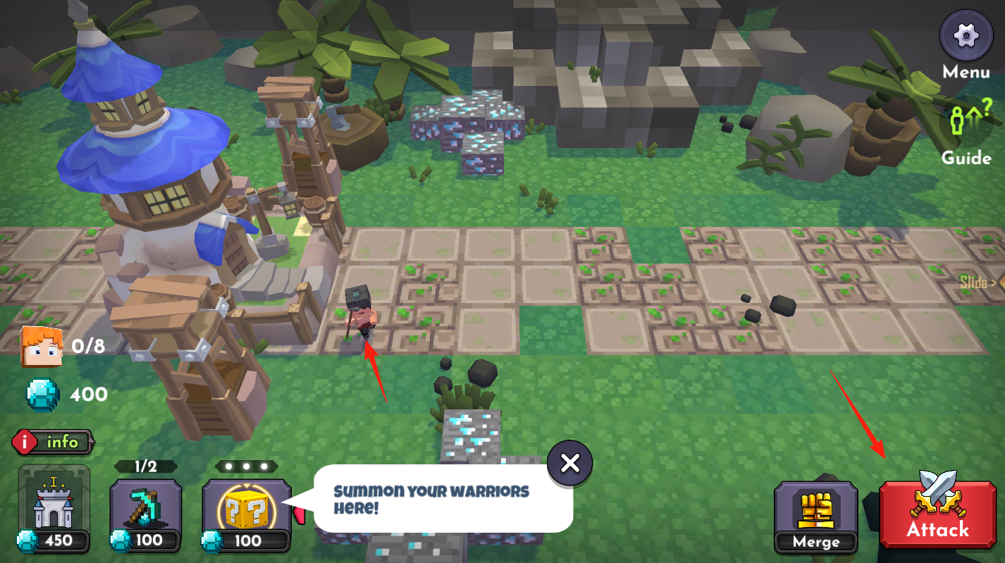 - 方块勇士是一款像素风格的策略塔防作品,玩家将化身为方块世界的勇士,在网格地图上排兵布阵,抵御不同类型的敌人进攻,同时策划反攻夺取敌方基地,以简洁