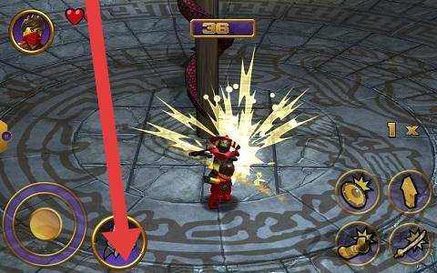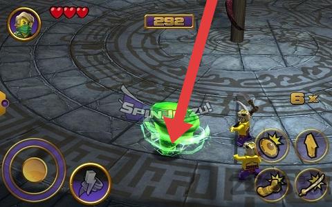 2、遇敌人围堵,使用【SPINJITZU】旋转技能,像绿色忍者释放绿色旋风,可群体击退敌人,挣脱包围并反击。