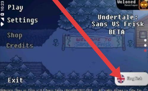 1、进入Undertale:Sans VS Frisk BETA游戏初始界面,点击【English】确认语言设置,开启游戏基础配置流程。