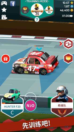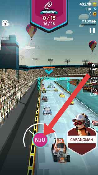 1、比赛过程中,点击赛车旁【N2O】按钮,触发氮气加速效果,快速提升赛车速度以超越对手。