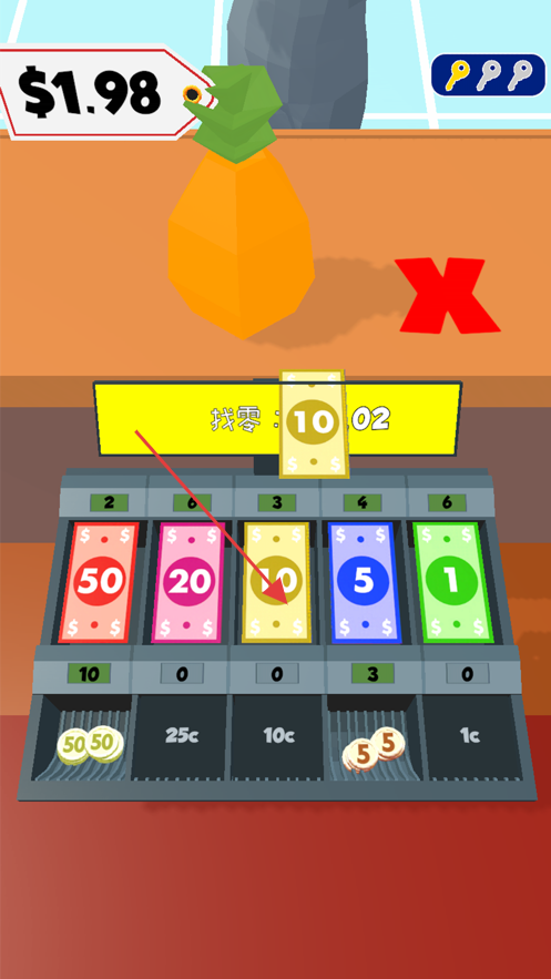 2、真实收银流程还原:从扫描商品条码计算总价,到接收现金、刷卡支付等全流程模拟,搭配“顾客排队时长”压力机制。