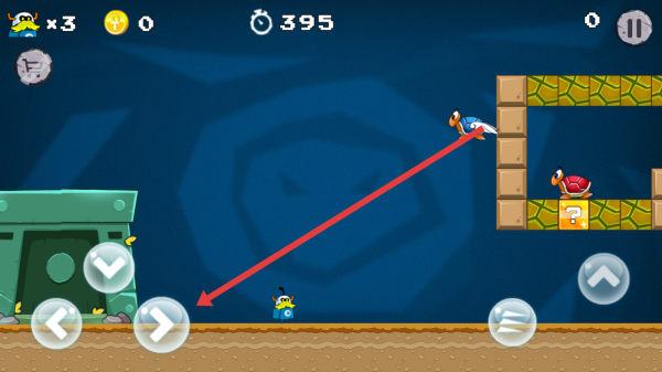 3、通过点击屏幕上的虚拟方向键,操控游戏角色进行前后左右移动,躲避障碍前进。
