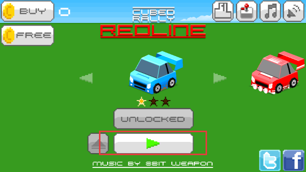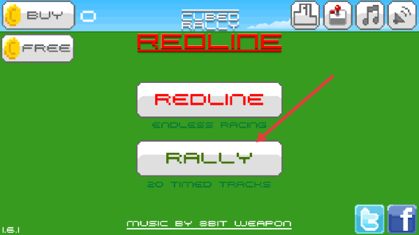 1、进入主界面,选【REDLINE】开启无尽竞速,或选【RALLY】挑战20条计时赛道,用金币道具。