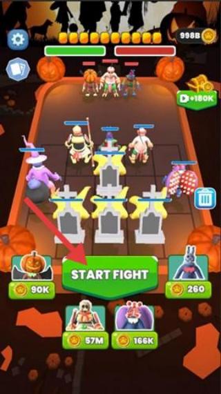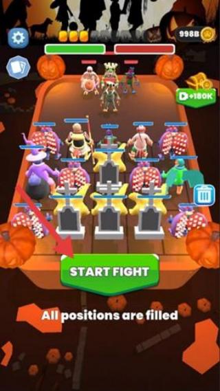 1、布阵界面,所有出战位置填满角色,点击“STARTFIGHT”开启战斗。