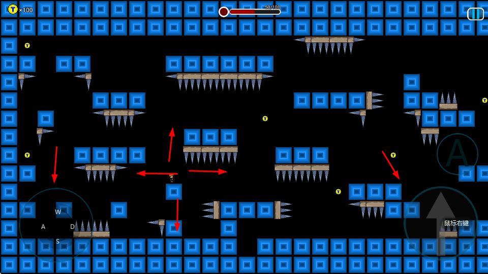 1、通过虚拟按键控制角色在关卡地图中上下左右移动,探索路径,避开尖刺等陷阱。