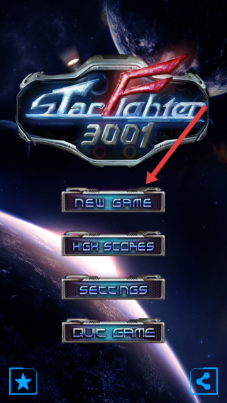 1、进入星际雷电战机的游戏主界面,需要点击【NEWGAME】的按钮,开启星际战斗之旅。