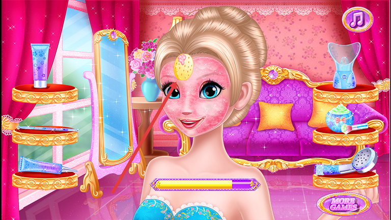 1、点击浴缸放满泡泡浴,用火山泥面膜给公主深层清洁。