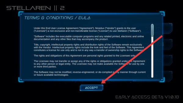 1、进入游戏,阅读“TERMS&-CONDITIONS/EULA”,点击【ACCEPT】,同意协议,解锁游戏权限。