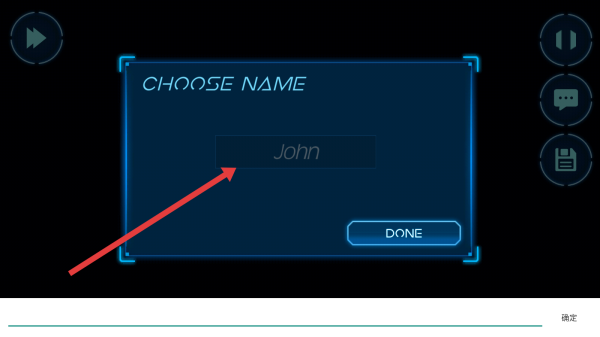 3、命名环节,在“CHOOSE-NAME”框输入名称(如保留“John”),点击【DONE】,确认角色身份,推进流程。