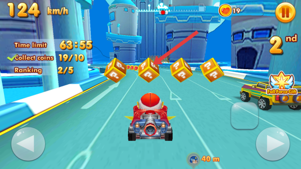 3、在驾驶自己的赛车撞击赛道上的问号方块,可以获取随机的道具,助力提升排名或完成任务。