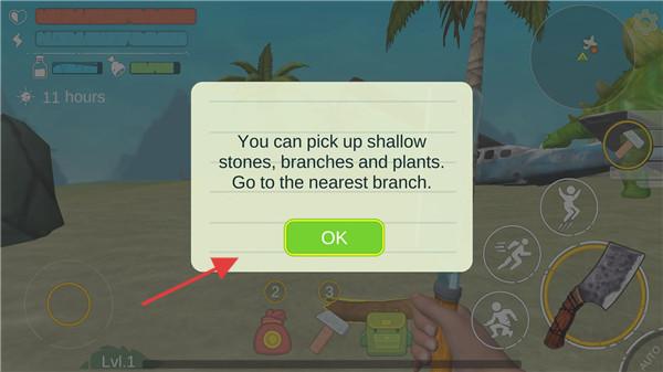 1、打开并进入游戏界面以后,首先捡一些浅的石头,树枝和植物使用。