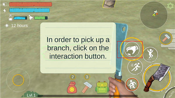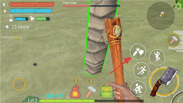 1、资源采集与制作:滑动屏幕操控角色砍伐树木、开采矿石,长按快速收集;利用工作台合成工具(石斧、弓箭)。