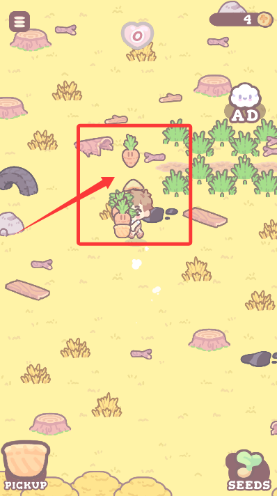 1、进入游戏,指挥小鸭主人挥舞镰刀,将杂乱草丛变成整齐的干草堆。