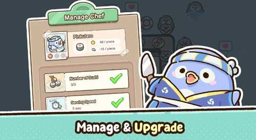4、轻量化的游戏设计适配多数移动设备,精致画面经过优化不占过多空间,离线模式确保随时随地都能经营寿司生意。