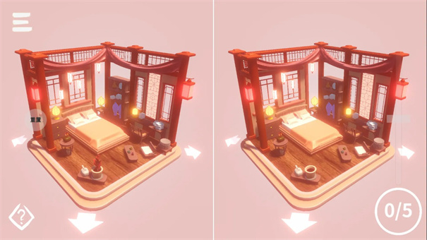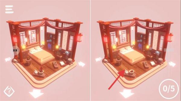 3、第三组中式房间,看家具、装饰变化,逐个识别,完成5处差异收集,通关。