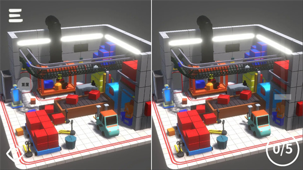 2、第二组工厂场景,对比车辆、设备位置,找出不同点,累计差异数。
