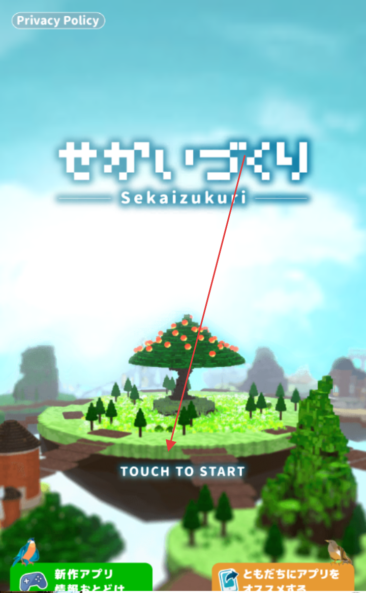1、点击“TOUCHTOSTART”,进入游戏,开启世界创造之旅,打造属于你的世界。