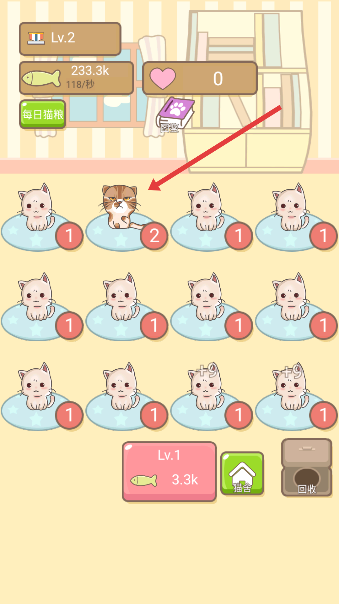 3、扩建猫别墅收留流浪猫,再把低级的猫猫全部合成,给猫舍腾出空间。