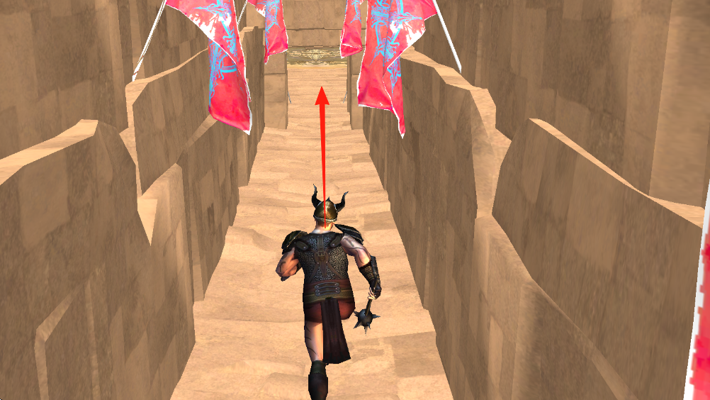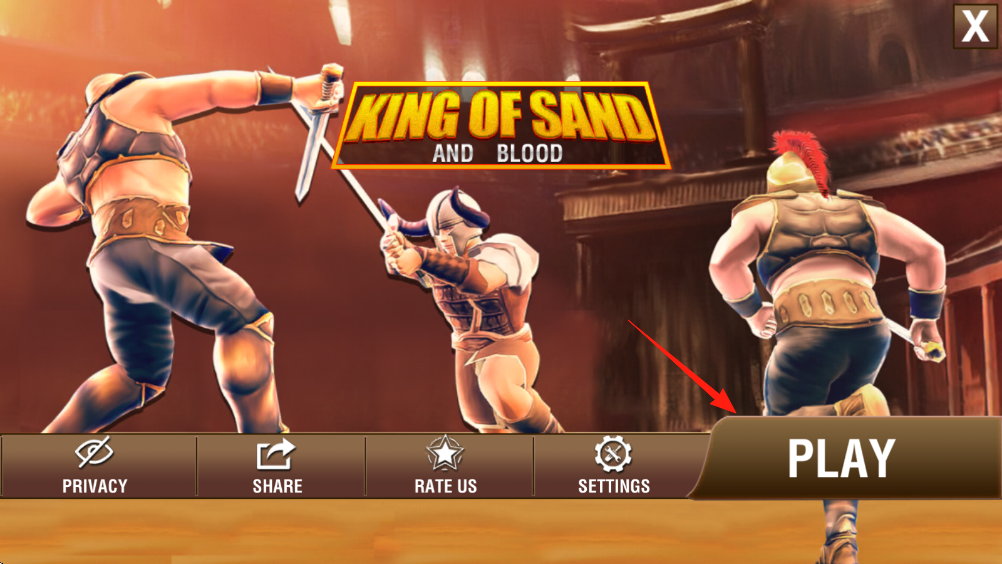 1、点击【PLAY】,进入游戏,操控角斗士沿通道(红箭头)前进,前往角斗场。