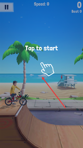 2、在“Taptostart”界面点击屏幕,启动小轮车,从海滩坡道出发。