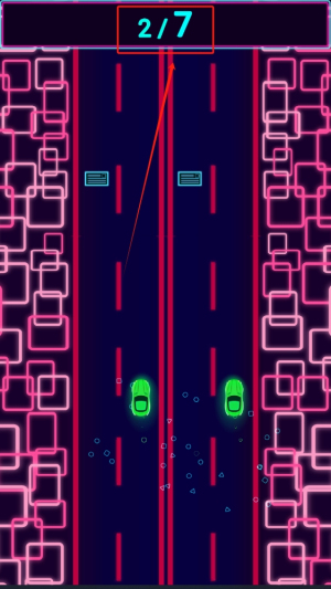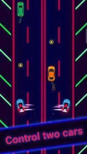 2、通过分屏触控同时操控两辆赛车,保持平衡避开障碍物。