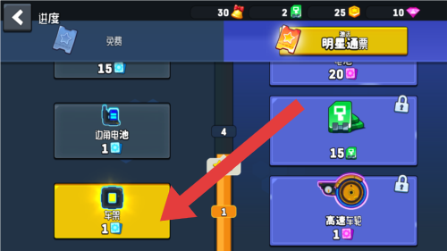 2、在流浪者世界2的进度界面中,点击黄色的【车架】图标,消耗资源解锁该道具,助力车辆改装。