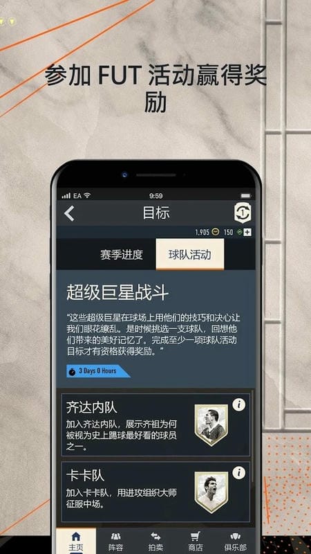 1、初入fifa23,玩家化身为俱乐部老板,在球员市场挑选心仪球员,着手组建专属足球战队,开启足球征程第一步。