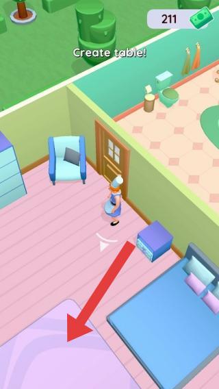 1、从场景(室内布置、角色动作)及“Createtable”(创建桌子)的提示,玩家需进行如布置、制作等经营操作。