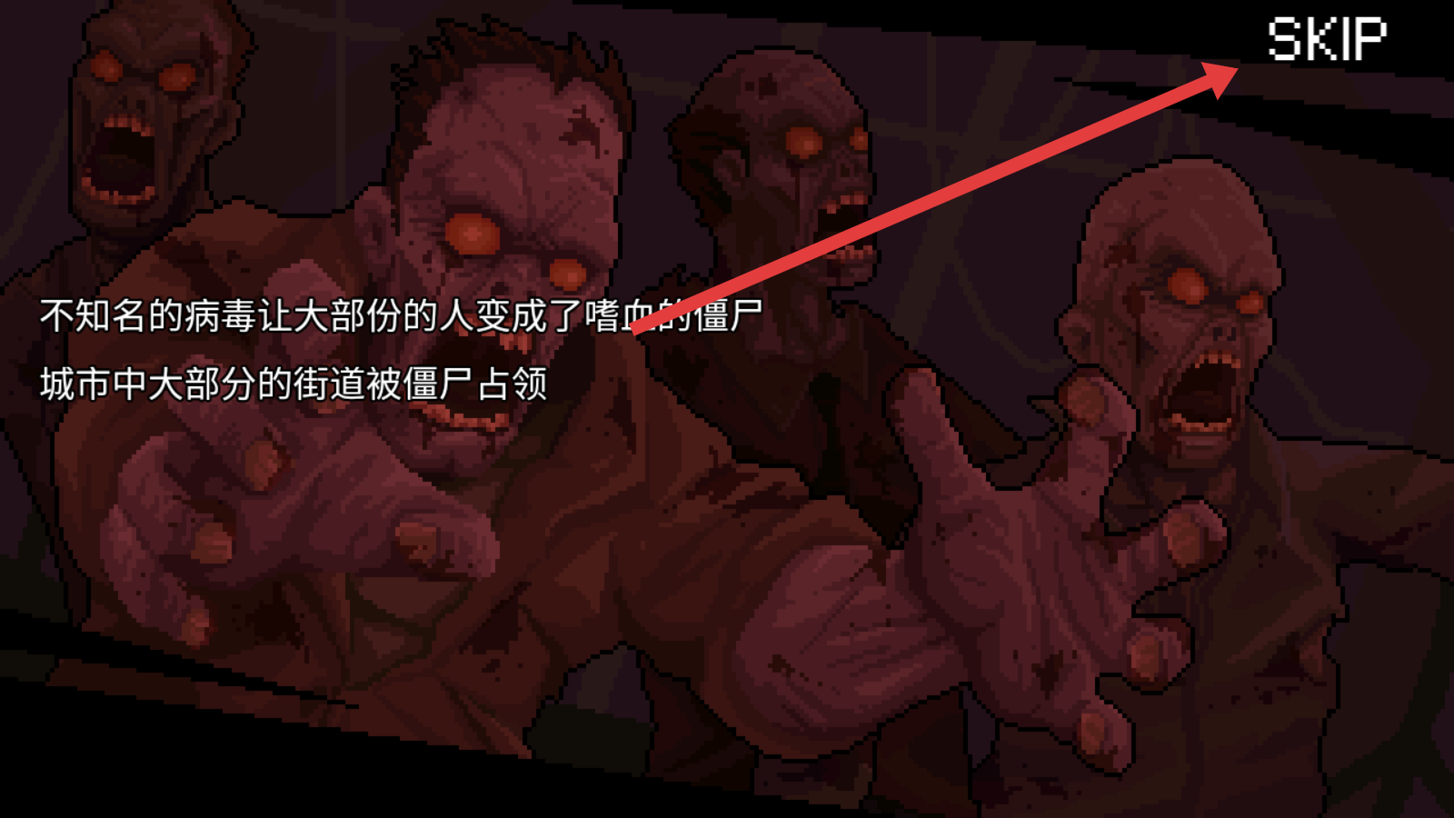 2、剧情界面,若想跳过背景故事,点击【SKIP】,快速进入战斗环节,直面僵尸危机。