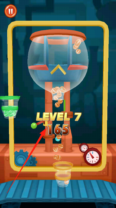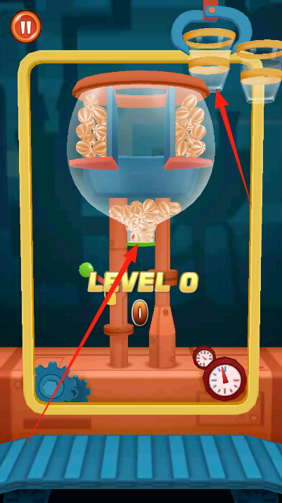 2、中期解锁多口味混合生产线,快速切换不同颜色的接球筐,在交错复杂的传送带上,成功收集30颗渐变色彩虹糖球。