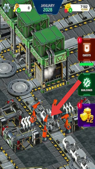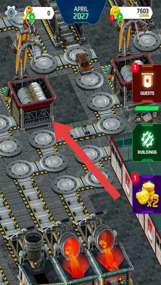 3、货币数值7603、功能按钮GUESTS(访客)、BUILDINGS(建筑),呈现工厂设施(如机械、熔炉等),玩法为管理工厂生产、建设设施、接待访客等。