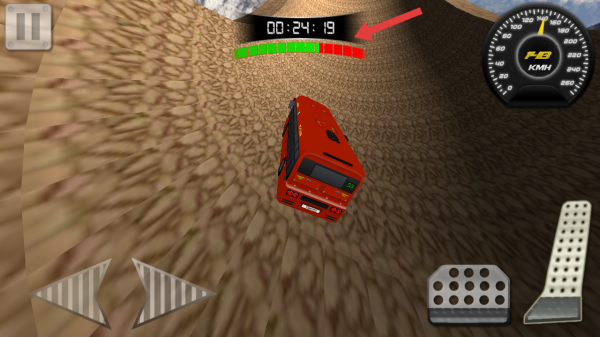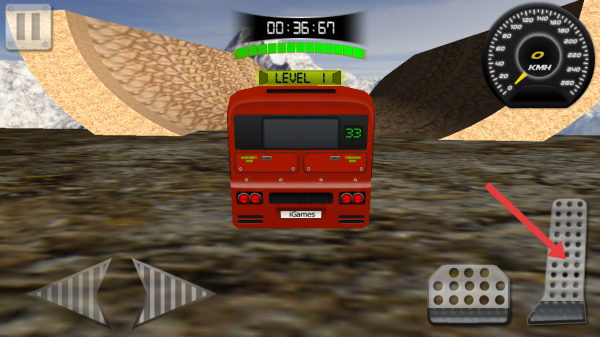 2、在游戏内需要点击车辆右侧踏板的图标,操控自己的巴士加速,应对地形开启驾驶进程。