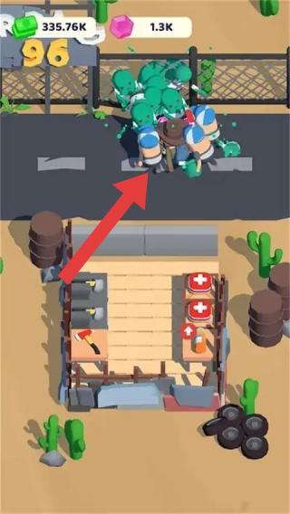 3、呈现沙漠场景基地,需要攻击围墙外的僵尸,是该塔防生存经营基地防御、抵御僵尸的战斗经营场景。