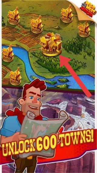1、画面展示地图及可解锁城镇(UNLOCK600TOWNS!),下方人物拿着蓝图,属于模拟经营类,玩家可解锁、建设城镇,体验中世纪村庄发展。