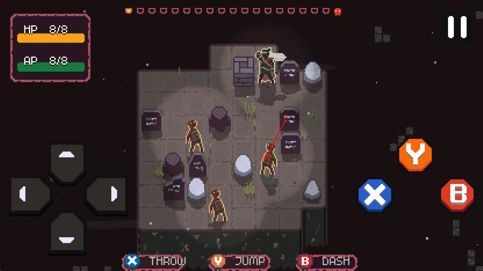2、复古像素美学:采用经典像素风格,细腻刻画地牢的阴暗角落、怪物形态与技能特效,搭配动态光影营造沉浸式冒险氛围。