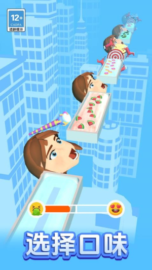 - 吃货向前冲带来趣味十足的跑酷体验,玩家将穿梭在布满美食的赛道上。沿途需要收集棉花糖、饼干等各类食材,同时避开障碍物。随着关卡推进,需要根据顾客需