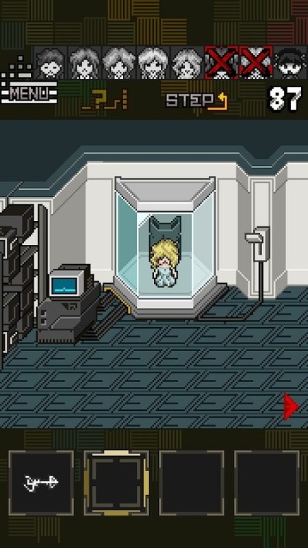1、打开游戏进入主界面,点击【开始冒险】按钮进入像素世界,通过方向键操控女孩移动,点击屏幕互动键调查可疑物品获取初始线索。