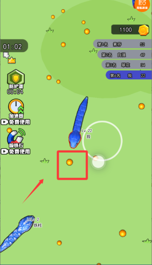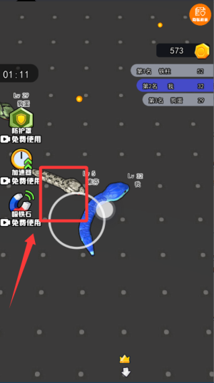2、通过吞噬地图上的能量点增长体型,当其他玩家撞到你的身体时,可以吞噬其掉落的能量。注意保持头部与对手的安全距离。
