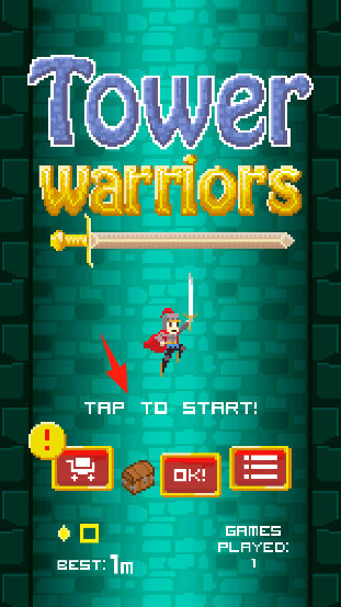 1、点击【TAPTOSTART!】,操控骑士角色,开始塔楼跑酷挑战。