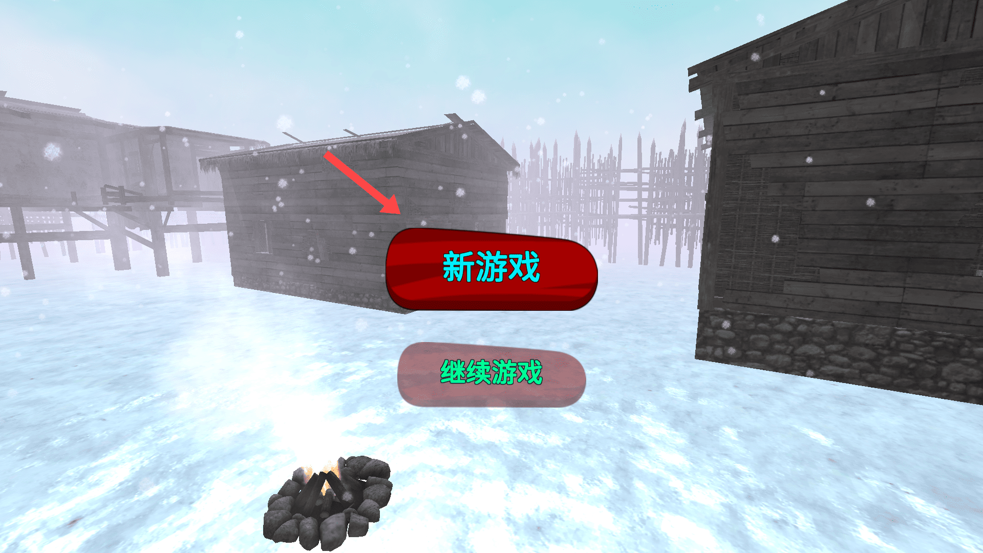 1、点击【新游戏】,进入雪地场景,开始生存挑战。